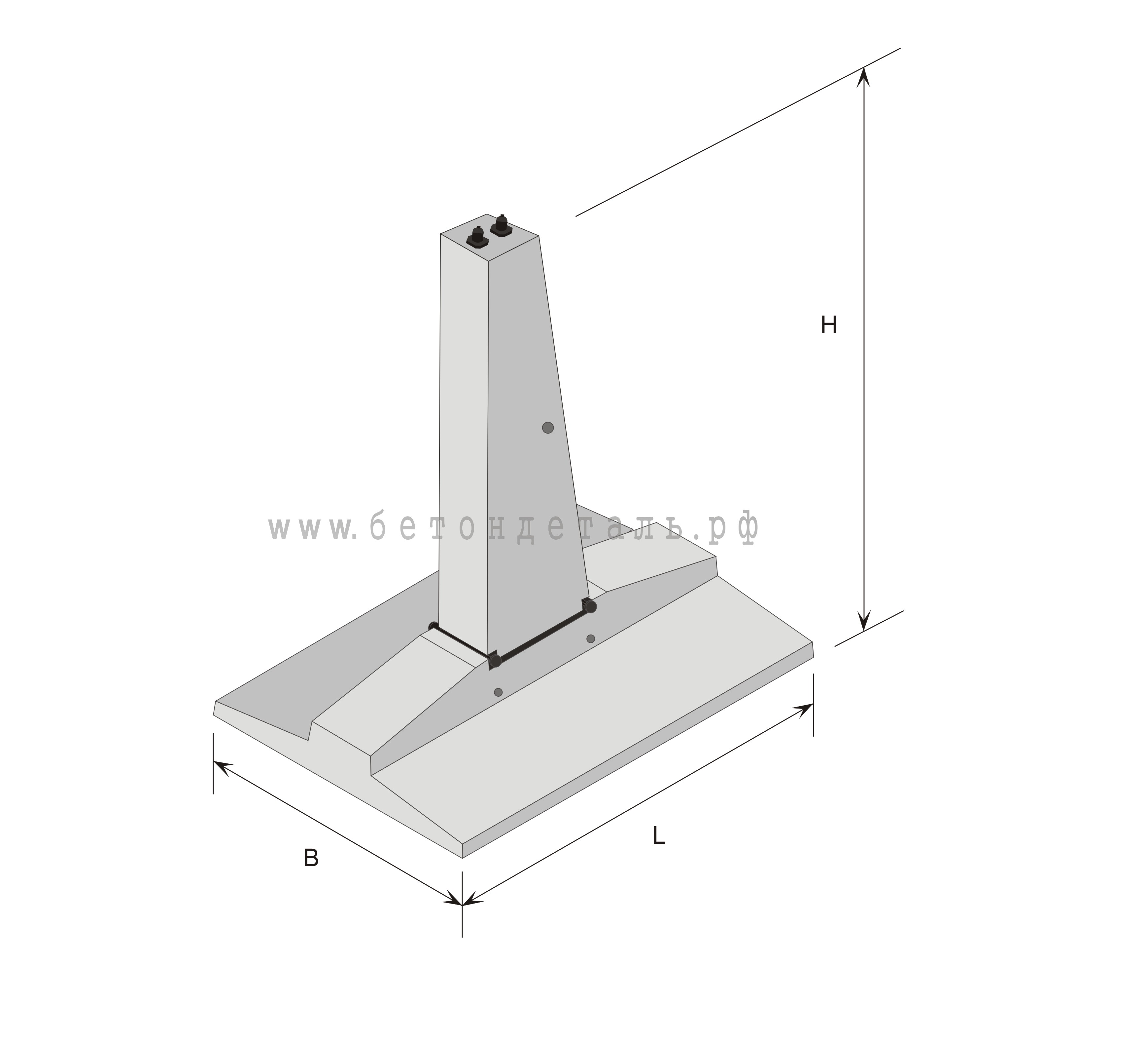 Фундамента под опоры ЛЭП изготавливают из высококачественного тяжелого бетона М400 (класс прочности на сжатие В30). Тяжелый бетон обладает высокой водонепроницаемостью W4 и морозостойкостью не менее F150. Высокая водонепроницаемость позволяет грибовидному фундаменту находиться под воздействием агрессивных химических сред вод и грунта. Изделие пространственным каркасом из горячекатаной стержневой арматурной стали класса A-III и A-I. Все стальные составляющие изделия обрабатываются антикоррозионными составами, а также имеют гидрофобную защиту.