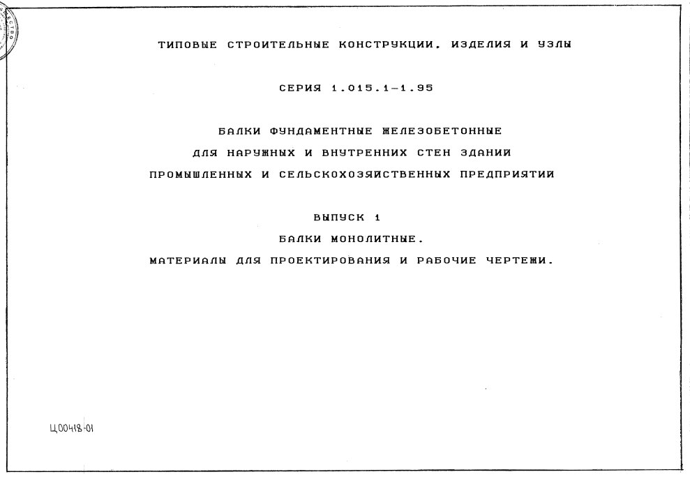 Серия 1.015.1-1.95. Балки фундаментные железобетонные для наружных и внутренних стен зданий промышленных и сельскохозяйственных предприятий.