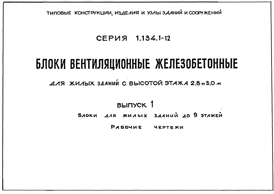 Серия 1.134.1-12. Блоки вентиляционные железобетонные для жилых зданий с высотой этажа 2.8 и 3.0 м