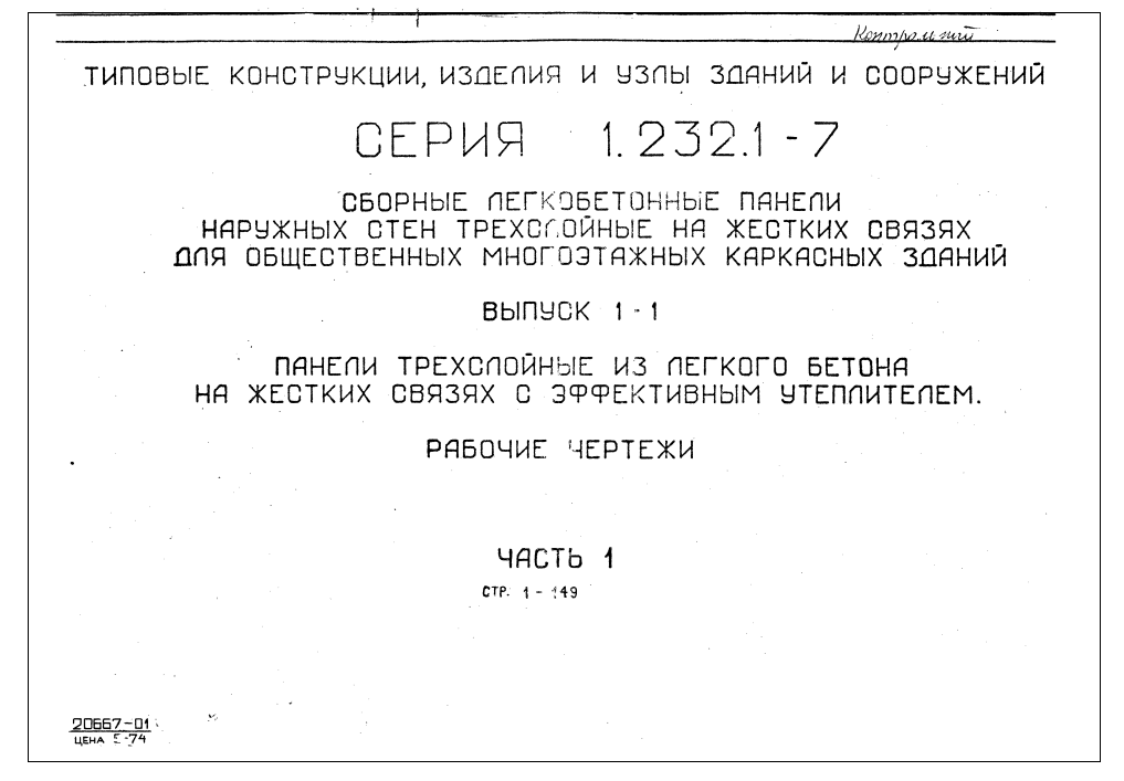 Серия 1.232.1-7. Панели трехслойные из легкого бетона на жестких связях с эффектным утеплителем