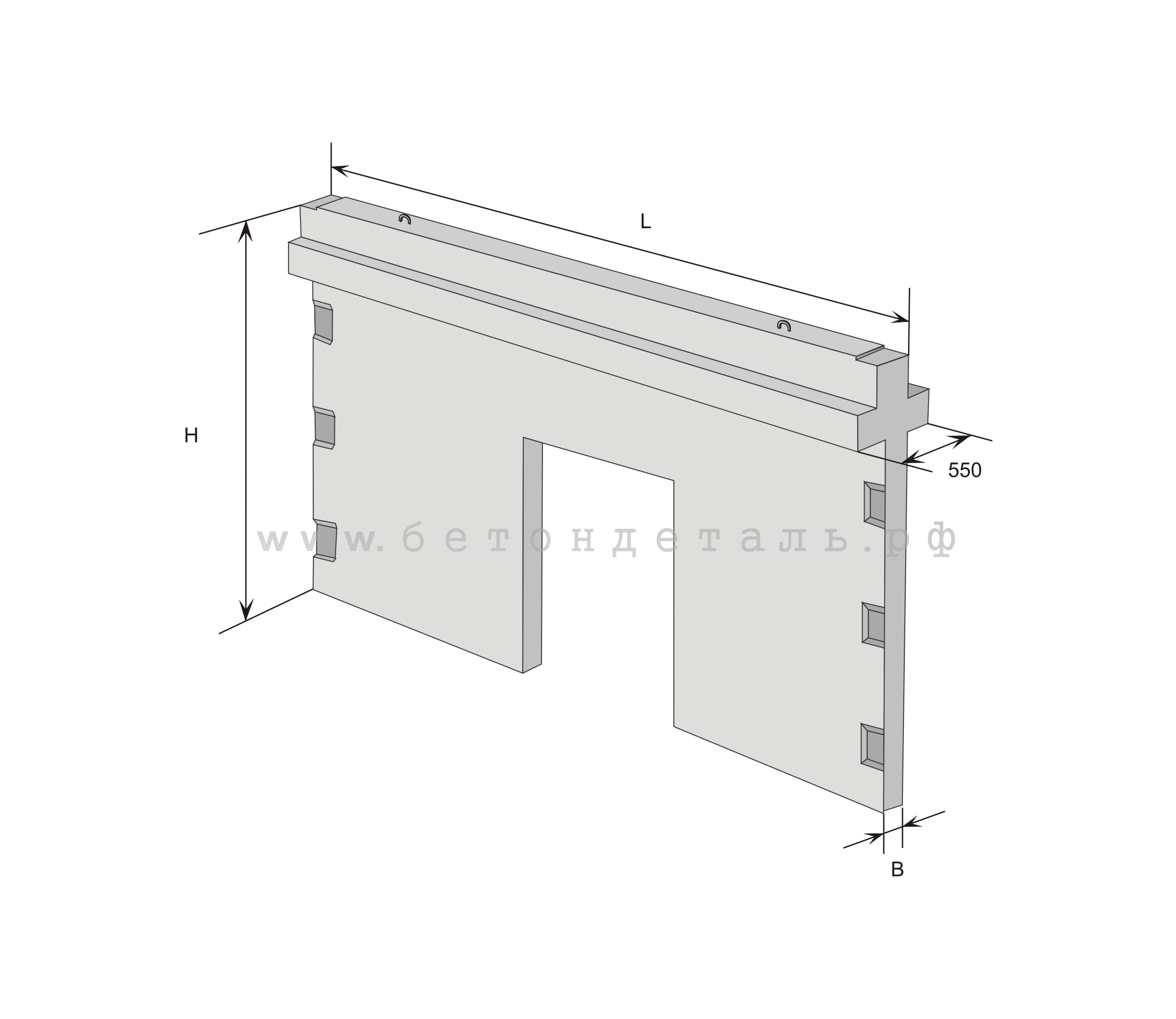 Диафрагмы жесткости с проемами по середине 2ДП 56-33  – это железобетонное изделие,  представляющее собой один из основных элементов зданий и сооружений, обеспечивающий безопасность конструкции в ходе эксплуатации. Основной задачей диафрагмы жесткости 2ДП 56-33  является восприятие горизонтальных нагрузок, таких как ветровые, сейсмические и нагрузки от действующего оборудования в здании. Нагрузка, передаётся на диафрагму от наружных стен через «диск» перекрытий. Как правило, ядра жесткости высотных зданий устанавливаются на массивный монолитный плитный фундамент. Диафрагмы жесткости в системе унифицированного каркаса могут формироваться из сборных железобетонных элементов. Диафрагмы в виде ядер жесткости могут иметь различную форму в виде плоских стен, уголков, швеллеров, замкнутых сечений прямоугольников, многоугольников и т. д. Консоли диафрагм жесткости сконструированы на расчетные нагрузки 55 и 110кН/м.