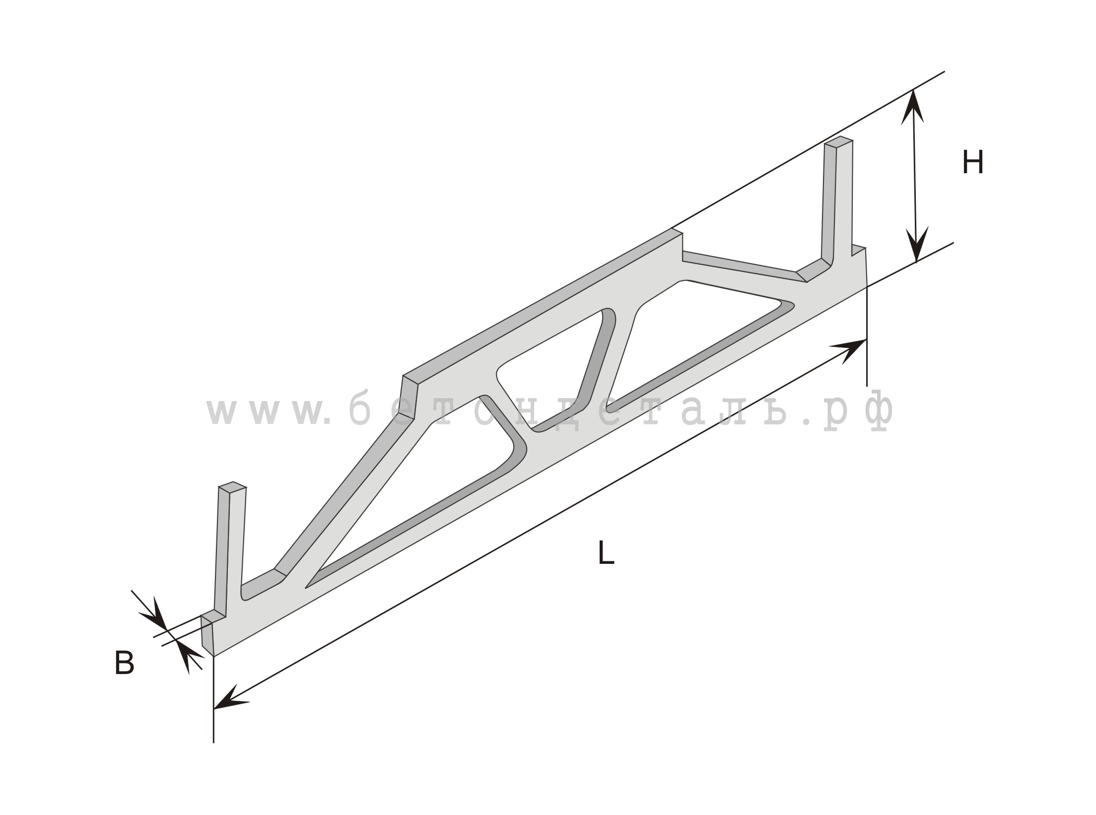 Железобетонные фермы 1ФПС 12 — это каркасные конструкции, представляющие собой, соединенные между собой стрежни. Железобетонные фермы — это одни из основных конструктивных элементов, позволяющих возводить одноэтажные здания. Данные изделия предназначены для создания крыши. Железобетонные фермы 1ФПС 12 применяются для покрытий зданий со скатной кровлей.