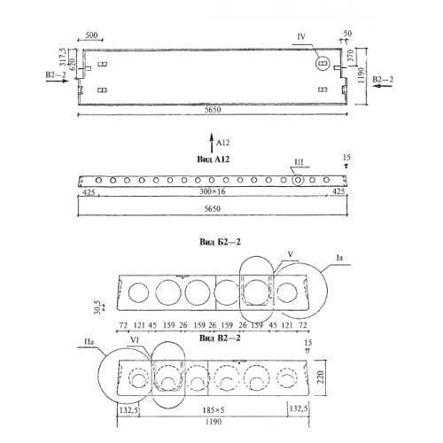 Плиты длиной 5650 мм и шириной 1190 мм с напрягаемой арматурой из стали классов  A-IIIв, A-IV, Ат-V  связевые, рядовые, из тяжелого бетона.  Метод натяжения - электротермический.