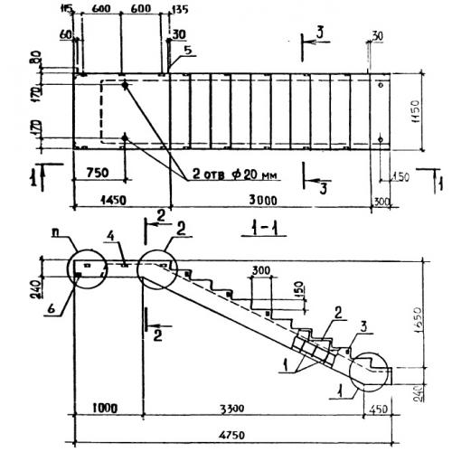 ЛМП 57.11.17  Лестничные марши ребристые с полуплощадками Серия 1.050.1-2.
