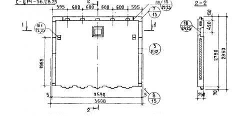 Панели стеновые цокольные СЦР1-36.28.25  (Серия 1.117-12с).