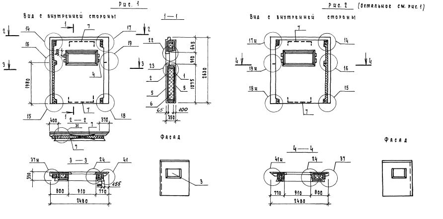 1 (2) - характер проемов (панель без проемов - 1, панель с окном - 2).