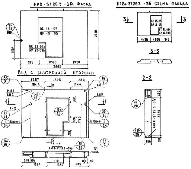 НР2-37.26.3-3бл    Наружная стеновая панель рядовая по Серии 1.132-2.