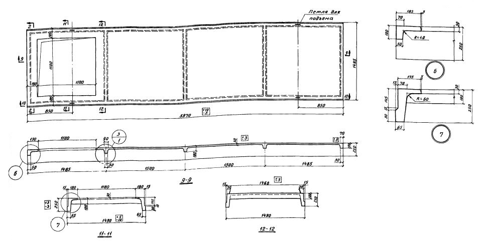 В соответствии с рабочими чертежами каждому железобетонному изделию присваиваются марки, которые состоят из буквенных и цифровых индексов. Маркировка плиты СПР 60-300-11 расшифровывается следующим образом: